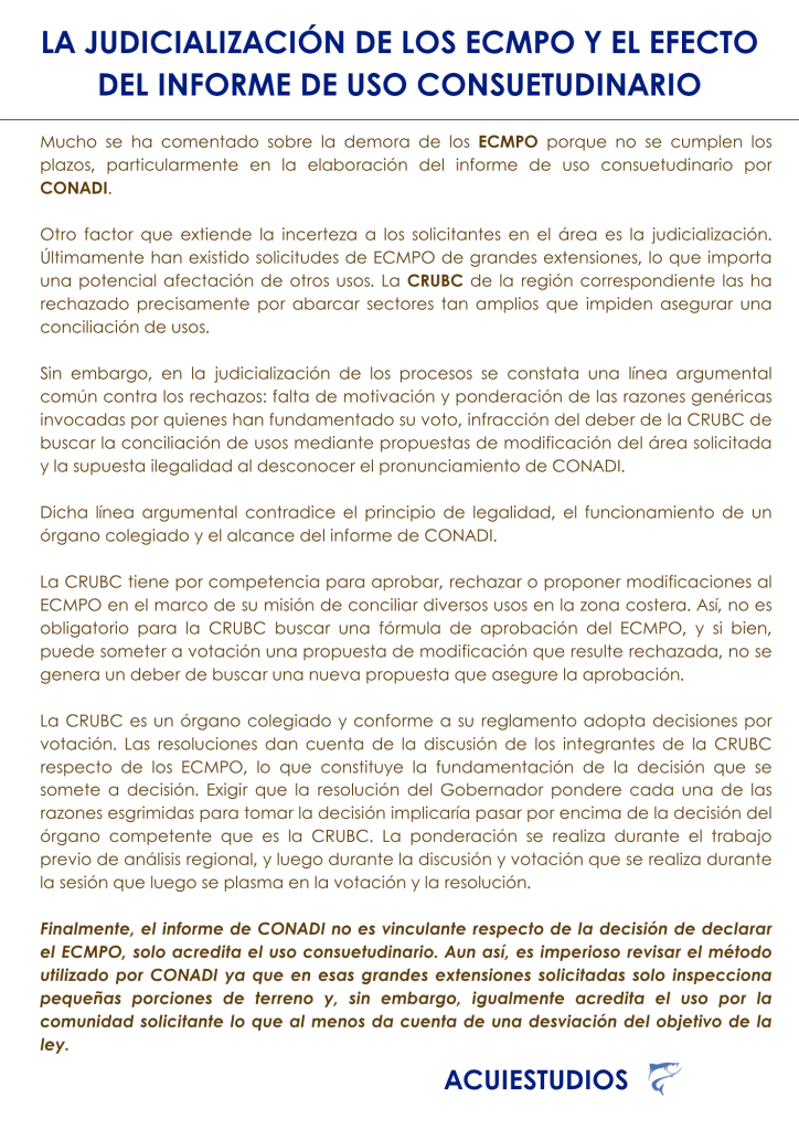 • >Acuicultura>¿Cómo impacta la judicialización de los ECMPO en la gestión costera y en la certeza jurídica de sus solicitantes?